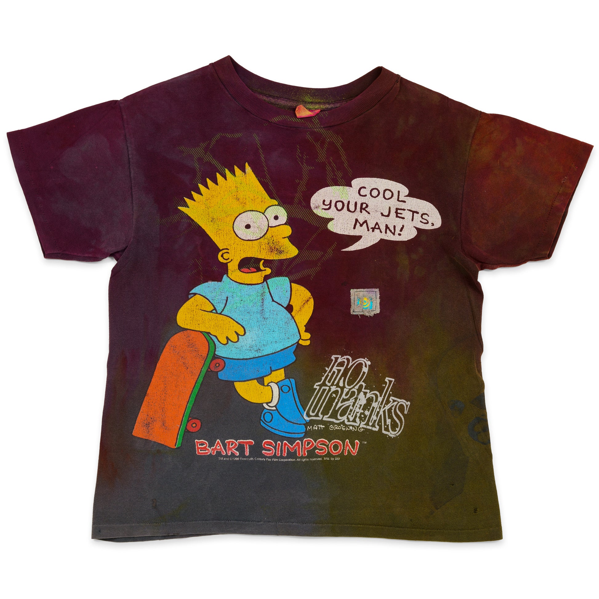 Blast-over Bart Simpson T. Features a laser-cut smiley appliqué patch & a square studio-rag smiley patch, along with 5 print-placements.
