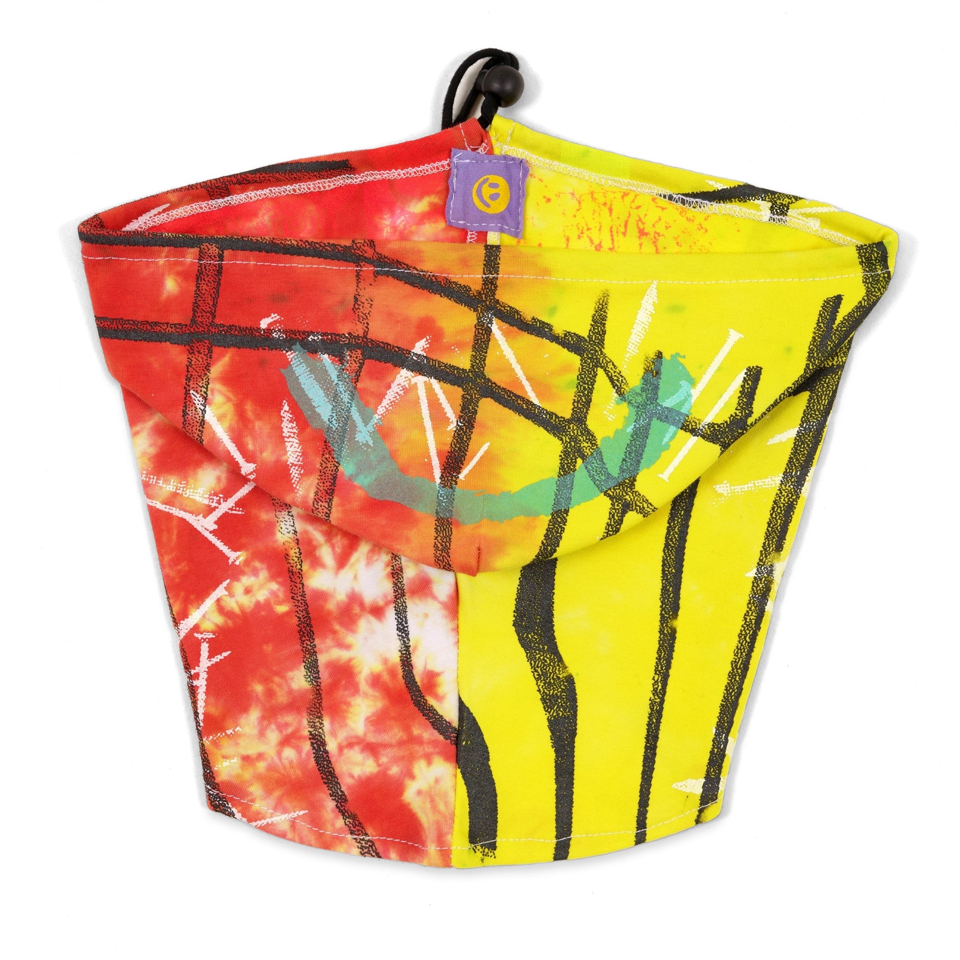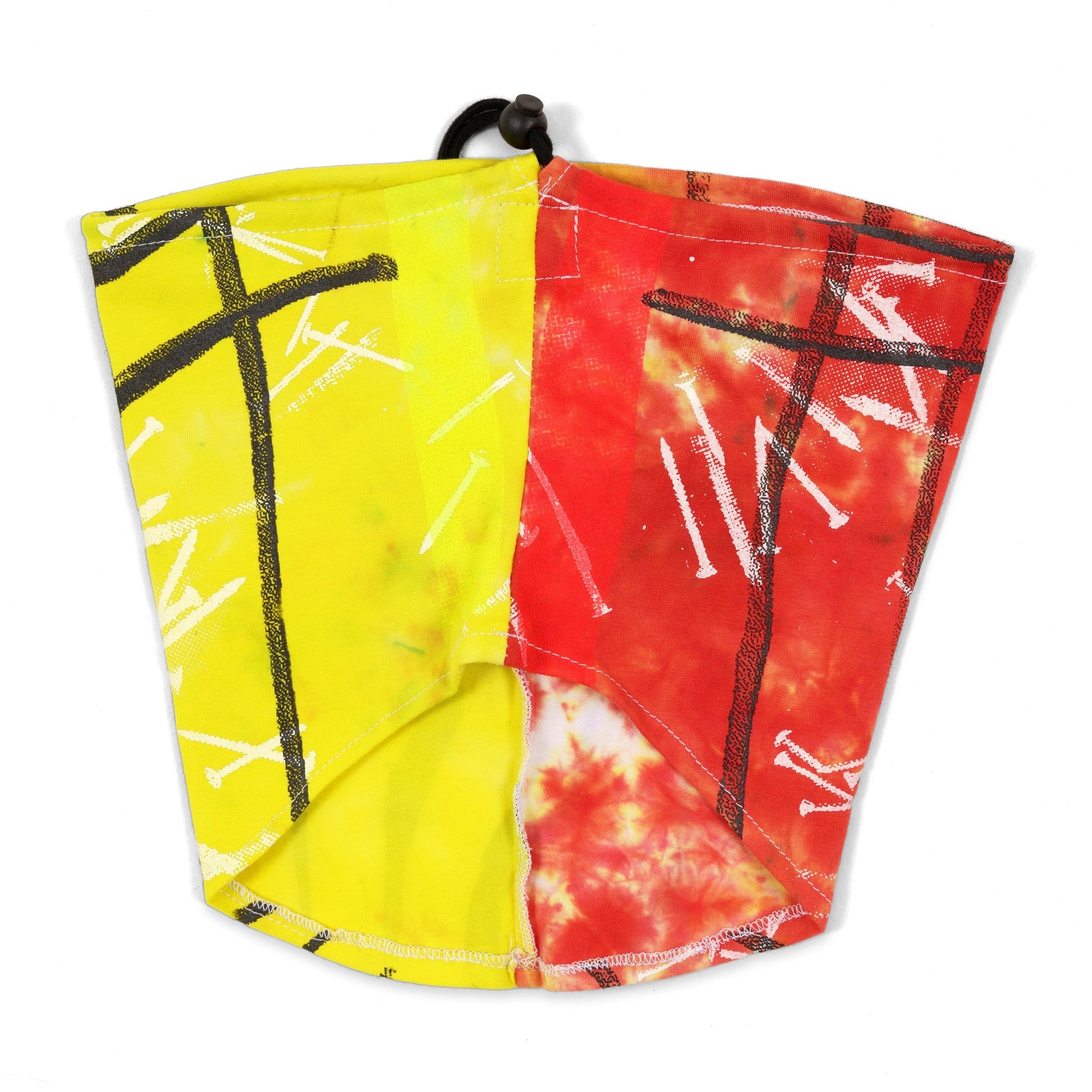 • Split scrunch-dyed yellow & orange-red w/ flecks of green
