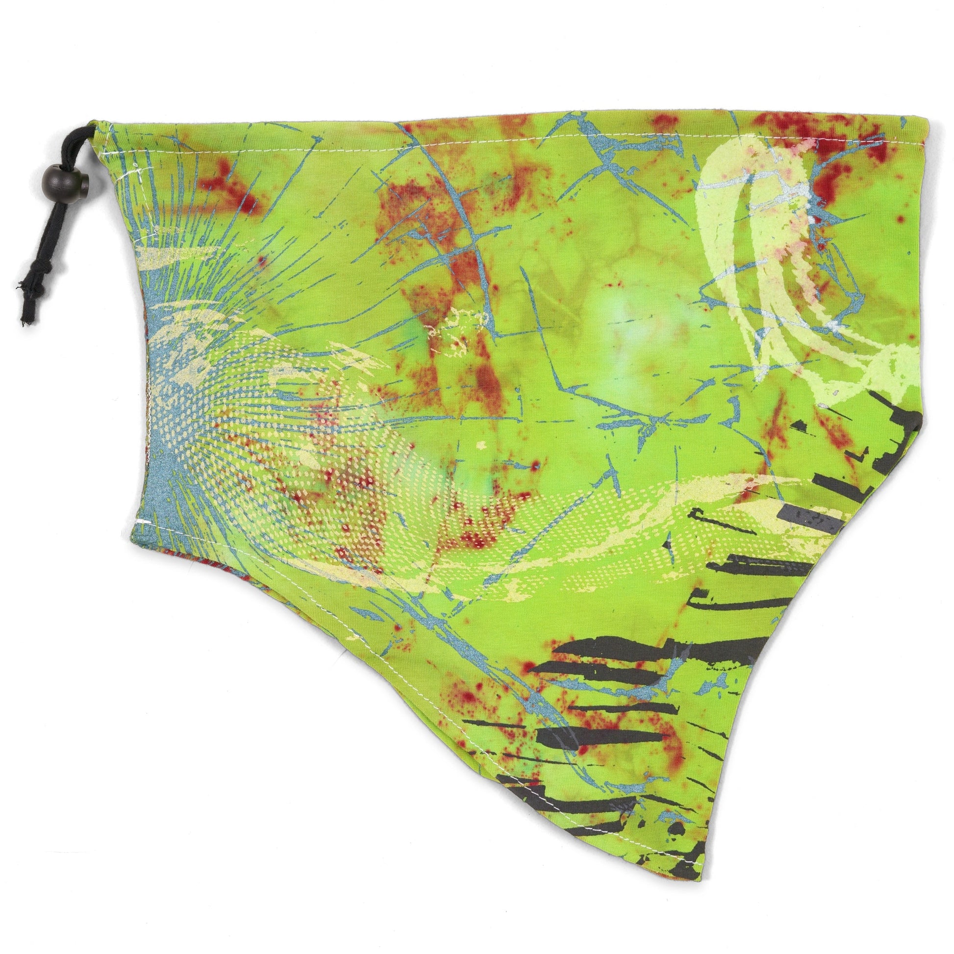 • Double scrunch-dyed dirty lime green w/ flecks of scarlet red