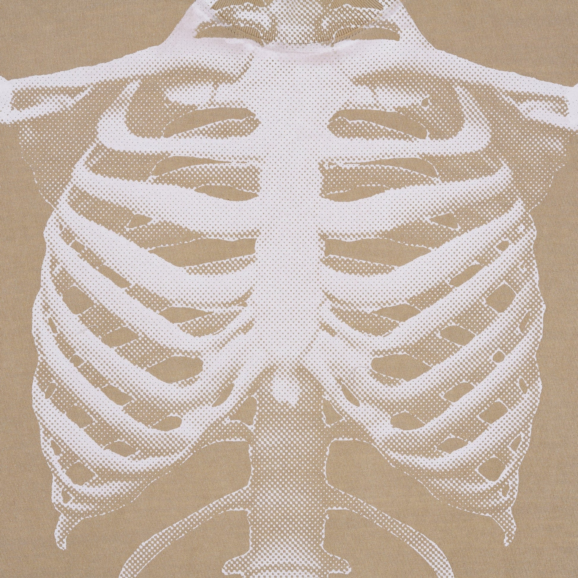 Skeleton graphics size up along with each sizing from Small to XL. The torso & each arm are printed separately to create slight placement variations, subtle print overlap, & underlying sense of movement between the parts.